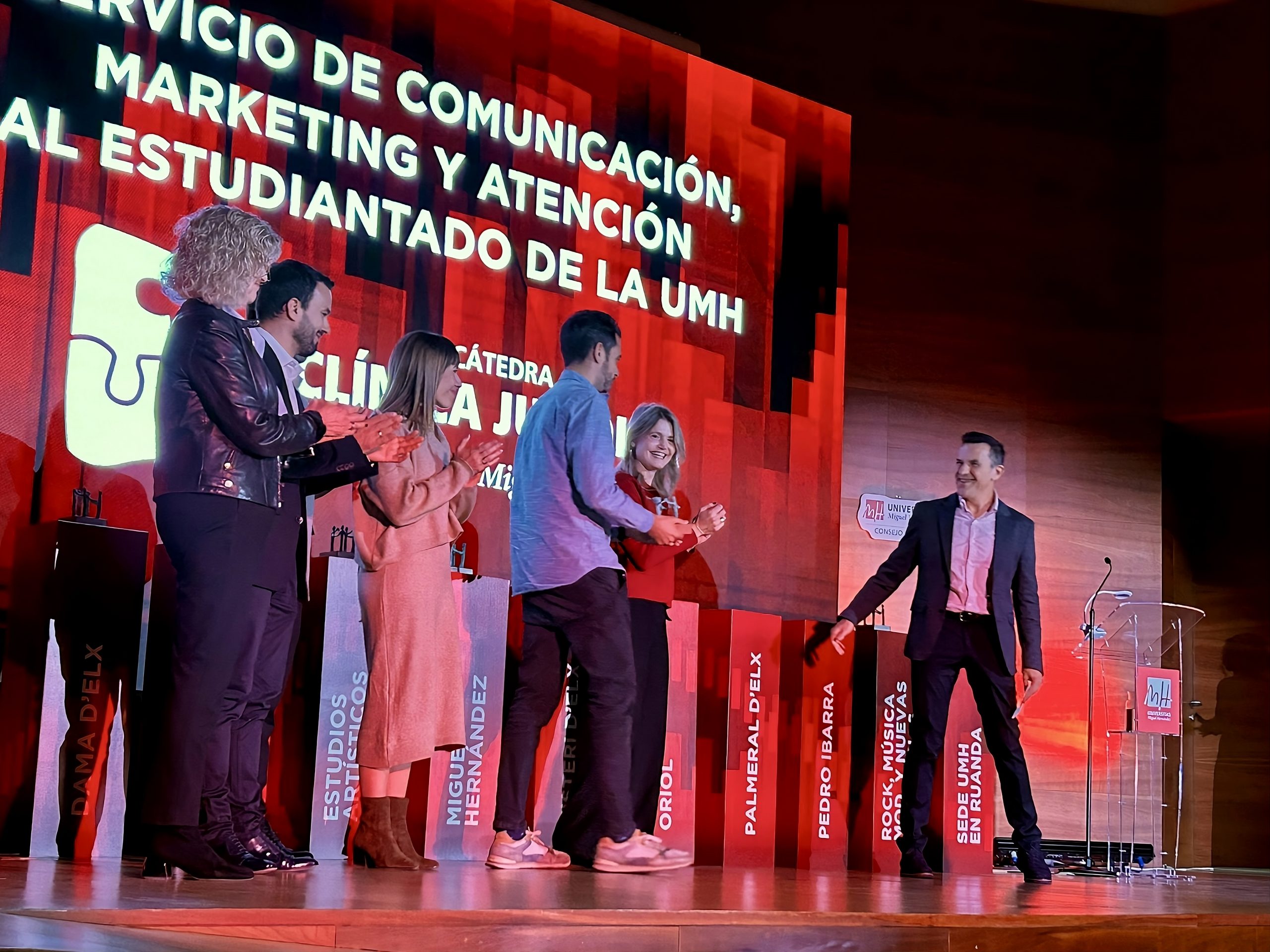 La Universidad Miguel Hernández (UMH) ha celebrado la XI edición de los Premios del Consejo Social el pasado 26 de noviembre. Galardones con los que se busca reconocer la labor y el compromiso de grupos y entidades vinculadas a la institución. Este año, el Servicio de Comunicación, Marketing y Atención al Estudiantado ha sido premiado por el apoyo prestado en la maquetación y publicación de la Guía de orientación jurídica a personas afectadas por la DANA.
